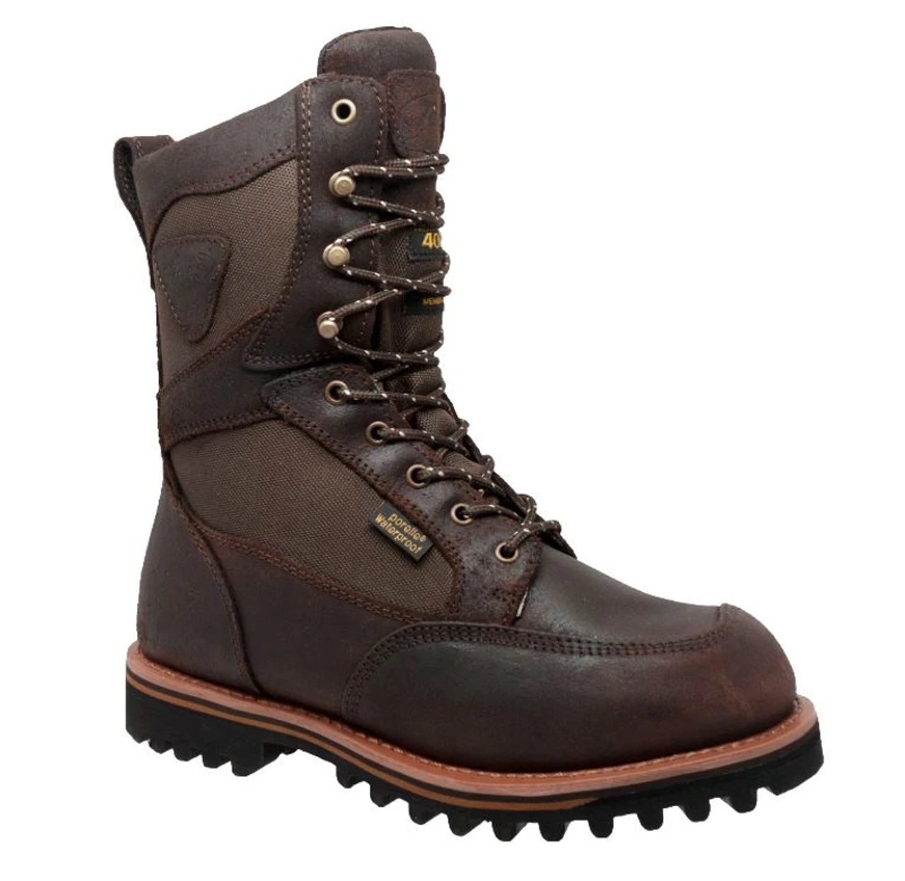 MEN’S 11 inch CORDURA: Porelle Waterproof Membrane, Brown Cordura Fabric, 11 inch Dark Brown Oiled Leather, 400 Gram 3M Thinsulate Ultra, Aggressive Bullet Rubber Outsole, Ultra Light EVA Cork Midsole, Steel Shank, Removable EVA Cushion Insole.