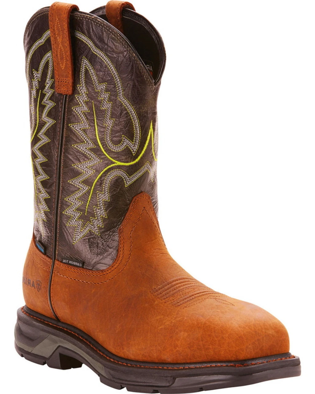 Get the job done right in perfect comfort and safety when you pull on these boots from AriatÂ. These boots have durable leather construction and an ATS Max insert, sure to provide you with barefoot comfort for hours on end. The carbon toe is lighter than the composite toe and will protect your toes from any sudden impact or compression. Never leave for work without pulling on these work boots from AriatÂ.
