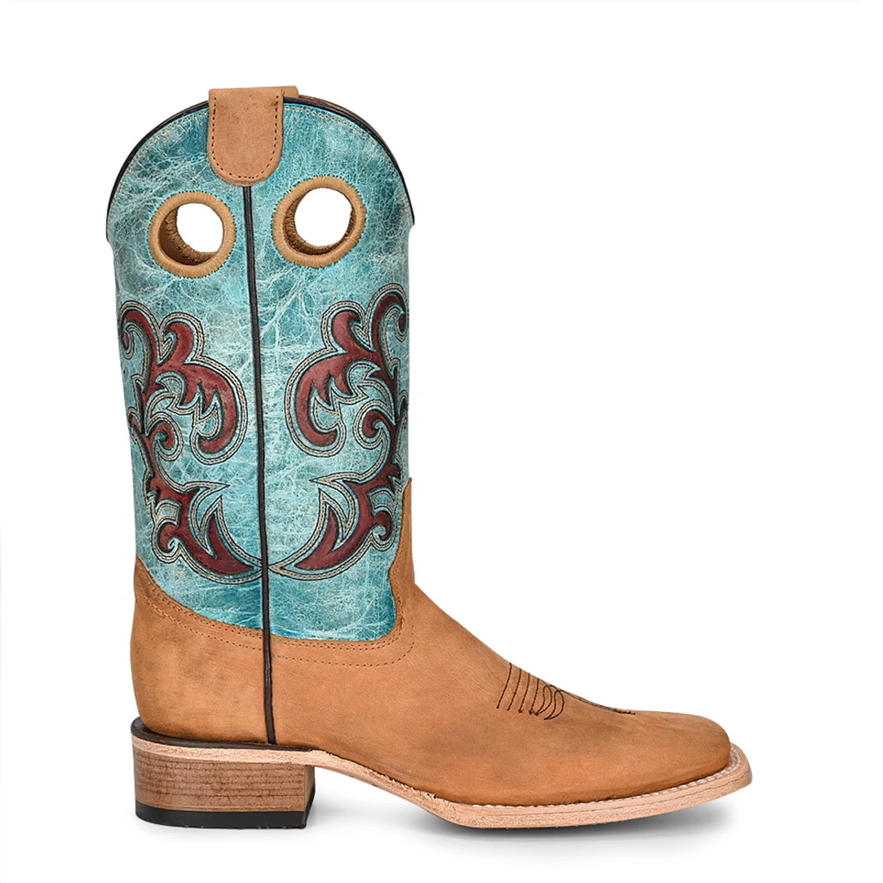 Corral Circle G Womens Tan & Turquoise Embroidered Square Toe Boots