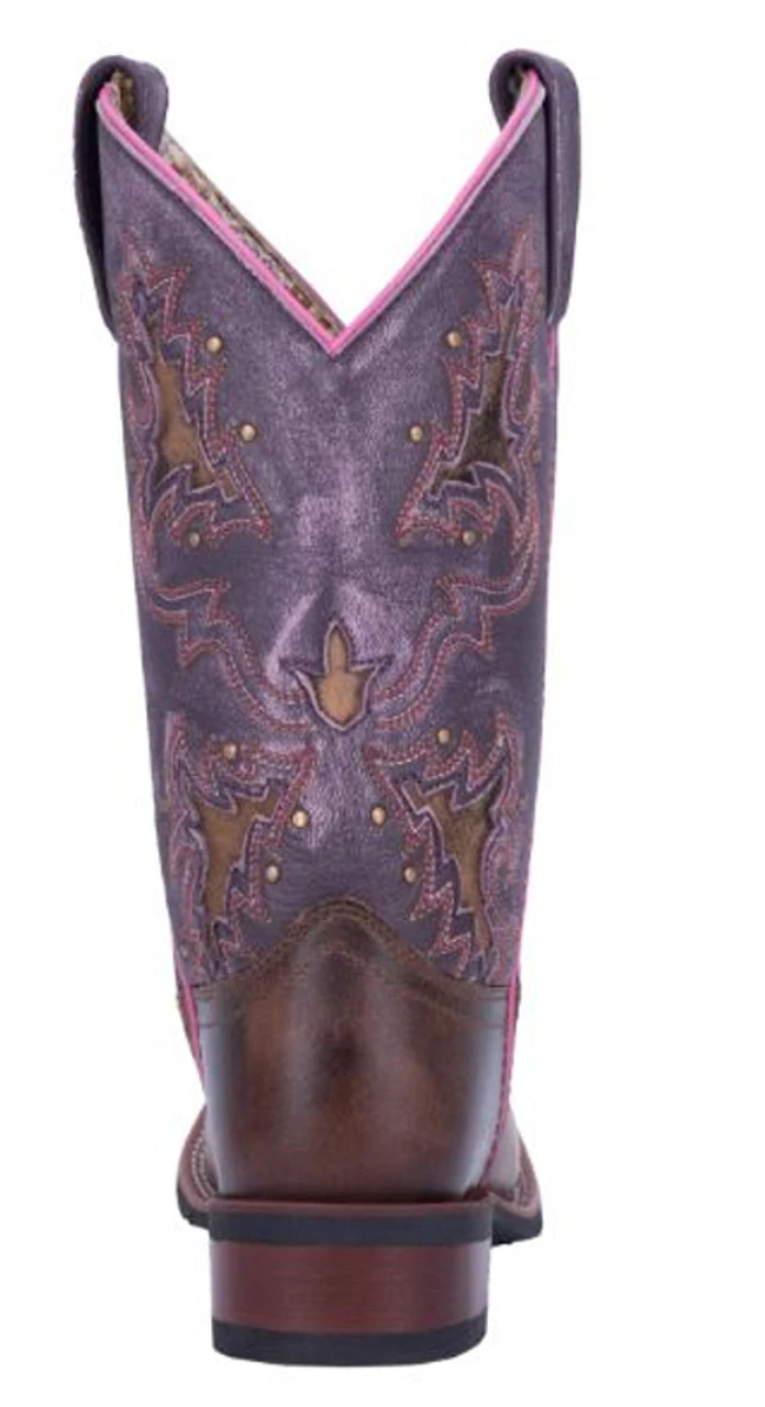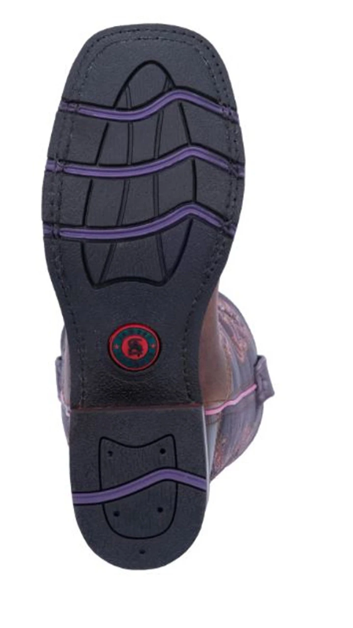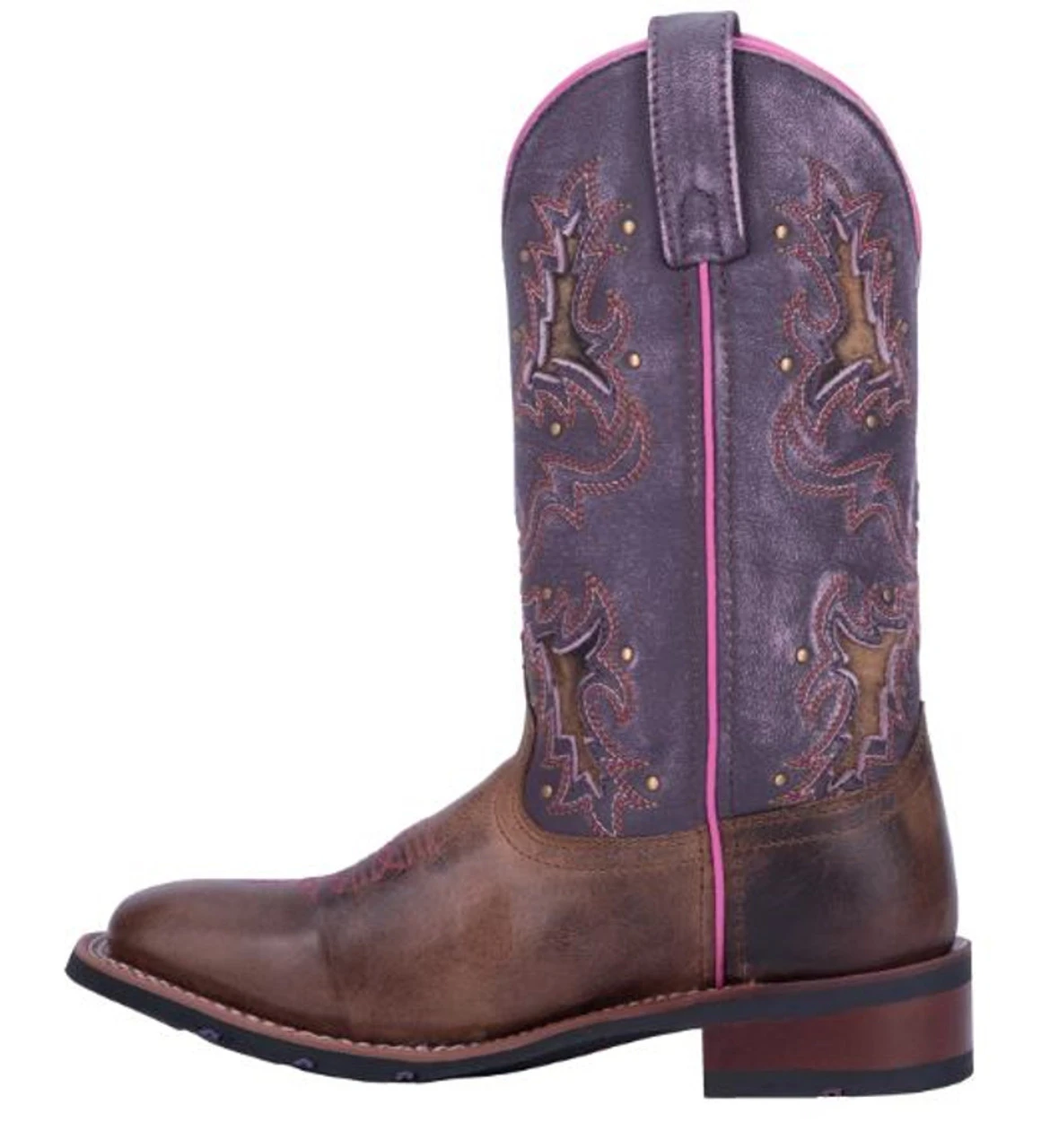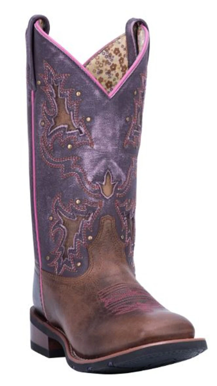 Rugged, yet feminine. That’s the Lola boot. Made with a smooth leather foot and distressed purple leather shaft with lovely underlays, western stitching, and brass tone studs. You’ll also love the Removable Orthotic, broad square toe, and Cowboy Approved II outsole.