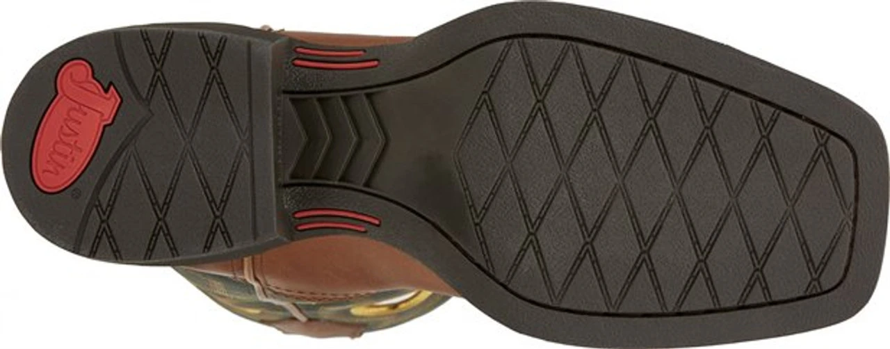 Warm yellow stitch design and pull holes adds detailed contrast, while the removable orthotic and breathable lining provides enduring comfort from the inside. This boot features the strength of our high-performing oil- and slip-resisting Stampede rubber outsole, and it’s finished with a full grain leather square toe and 1 3/8″ walking/block heel.