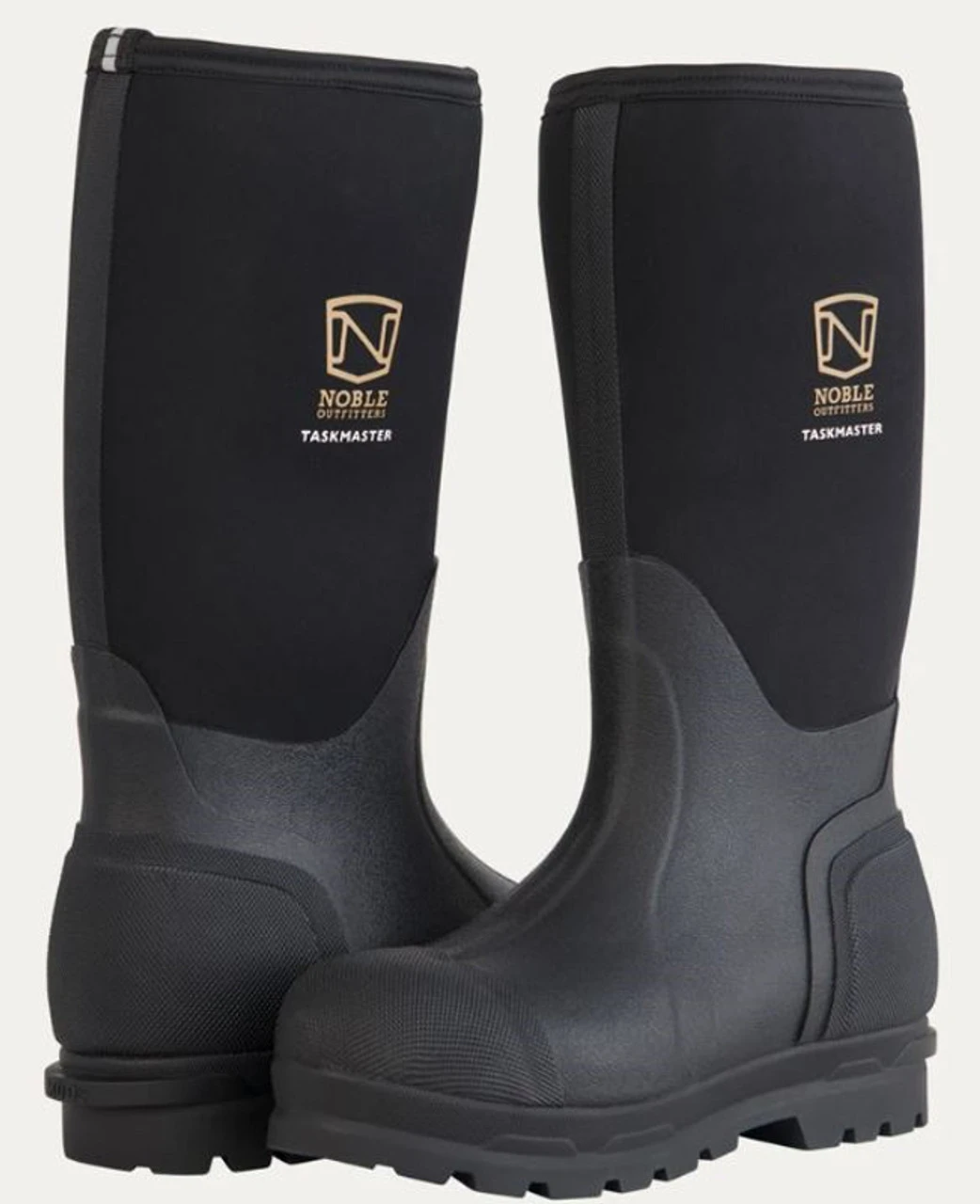 Wet, muddy. Defend yourself from rugged everyday work conditions with the Noble Outfitters™ MUDS Taskmaster High Boot. Our shock absorbing, dual compound insole keeps feet dry and ache free all day long. With 100% waterproof construction, industrial grade rubber construction, and 5mm neoprene, thereâ€s nothing that can get in the way between you and the task at hand. Plus, our Steel Toe is ASTM F2413-18 M I/75 C/75 EH rated and perfect for professional work conditions.